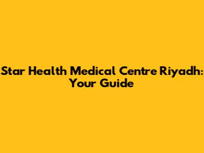 Star Health Medical Centre Riyadh: Your Guide