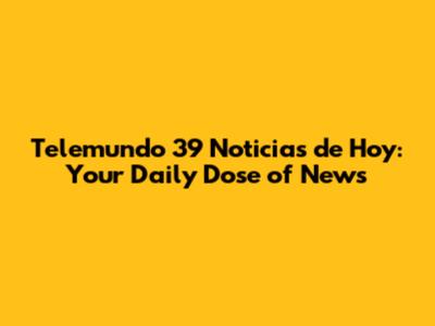 Telemundo 39 Noticias De Hoy: Your Daily Dose Of News