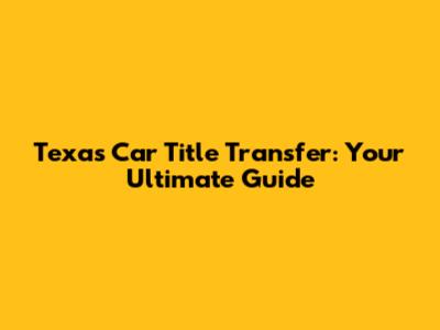 Texas Car Title Transfer: A Comprehensive Guide