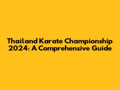 Thailand Karate Championship 2024: Everything You Need To Know