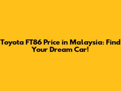 Toyota FT86 Price In Malaysia: Find Your Dream Car!