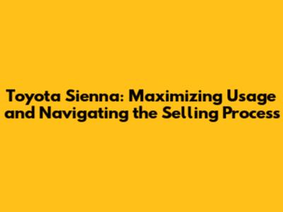 Selling Your Toyota Sienna: A Comprehensive Guide