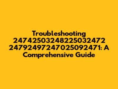 Troubleshooting 24742503248225032472 24792497247025092471: A Comprehensive Guide
