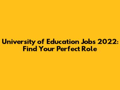 University Of Education Jobs 2022: Find Your Perfect Role