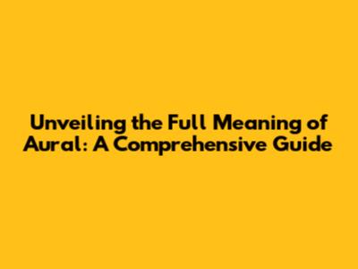 Unveiling The Full Meaning Of 'Aural': A Comprehensive Guide