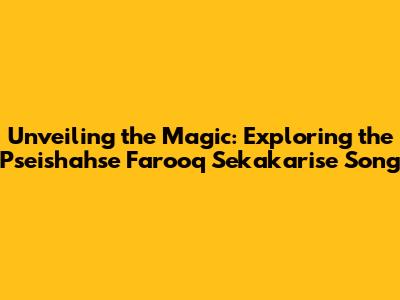 Unveiling The Magic: Exploring The Pseishahse Farooq Sekakarise Song