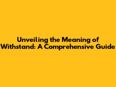 Unveiling The Meaning Of 'Withstand': A Comprehensive Guide