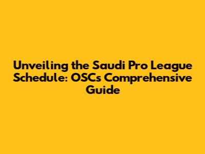 Unveiling The Saudi Pro League Schedule: OSC's Comprehensive Guide