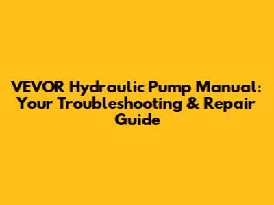 VEVOR Hydraulic Pump Manual: Troubleshooting & Repair