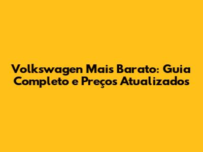 Volkswagen Mais Barato: Guia Completo E Preços Atualizados